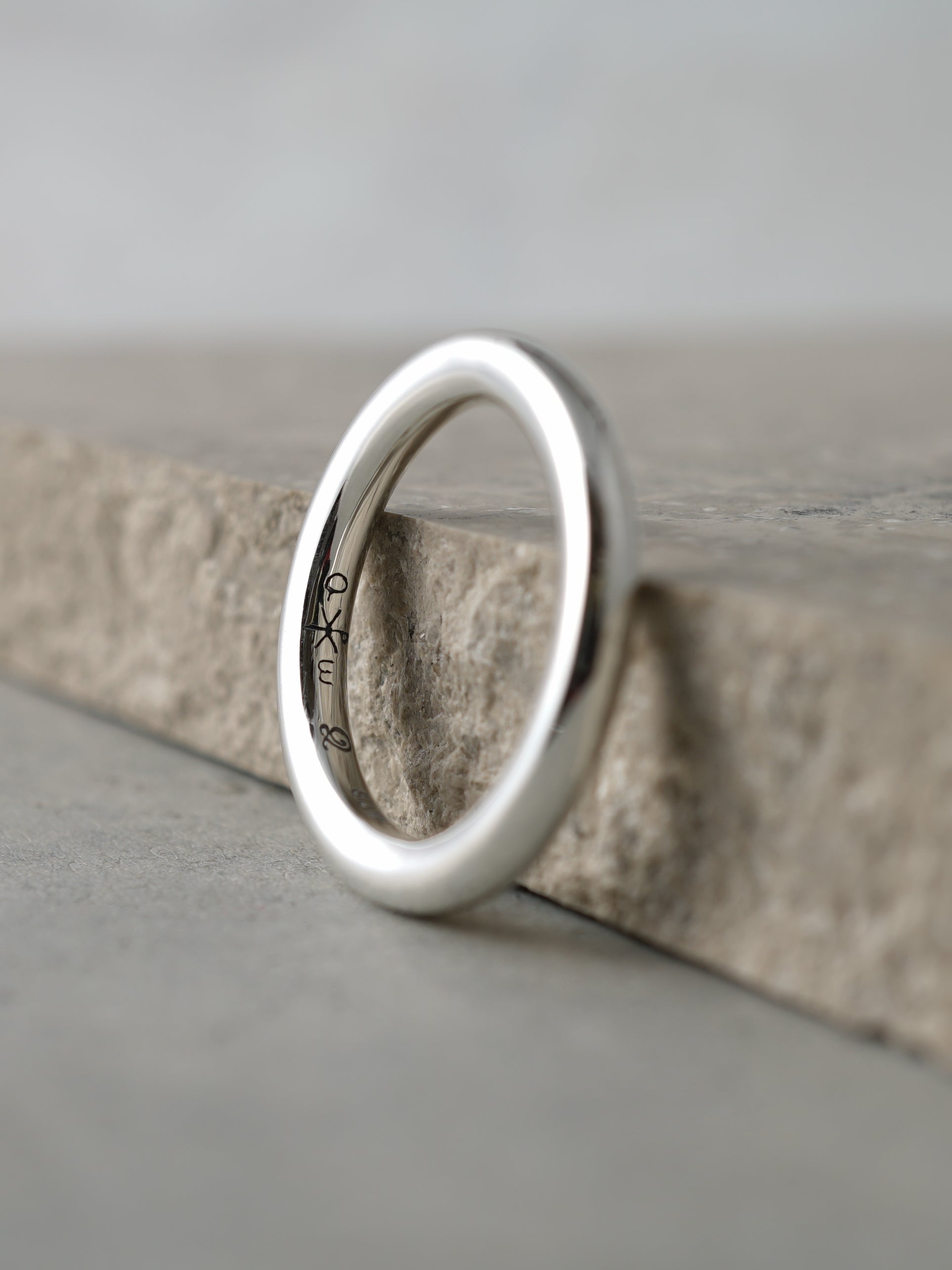 これ以上削ぎ落とすものが何もなくなるまで装飾を廃し、"普段使いのアクセサリー"ということを強く意識しました。「円」型の断面が一周しているデザインです。